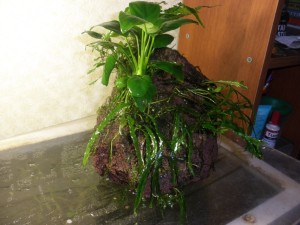 Предлагаю вашему вниманию кусок лавы весом примерно 2 кг с прирощенным на ней папоротником и анубиасом