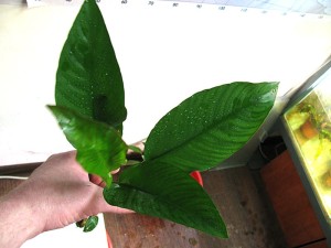 Не сложный и очень красивый анубиас, без проблем растет как в воде так и в теплице (в тепличке вырастает крупнее).
