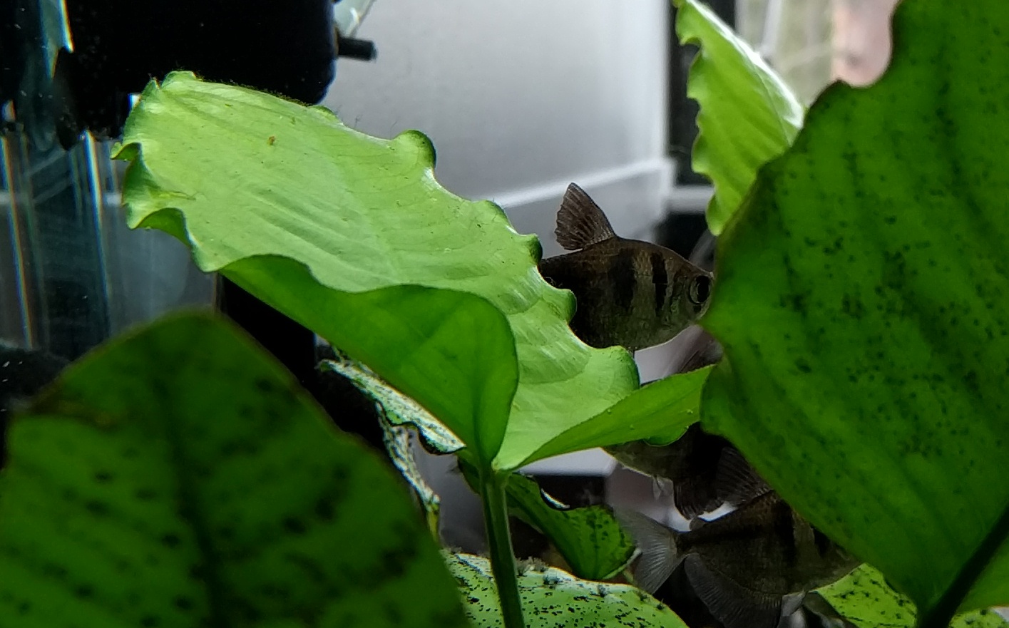 Анубиасы растут медленно – лист в месяц в лучшем случае. Криптокорины с момента посадки разрослись по всему дну, но листья в основном мелкие.