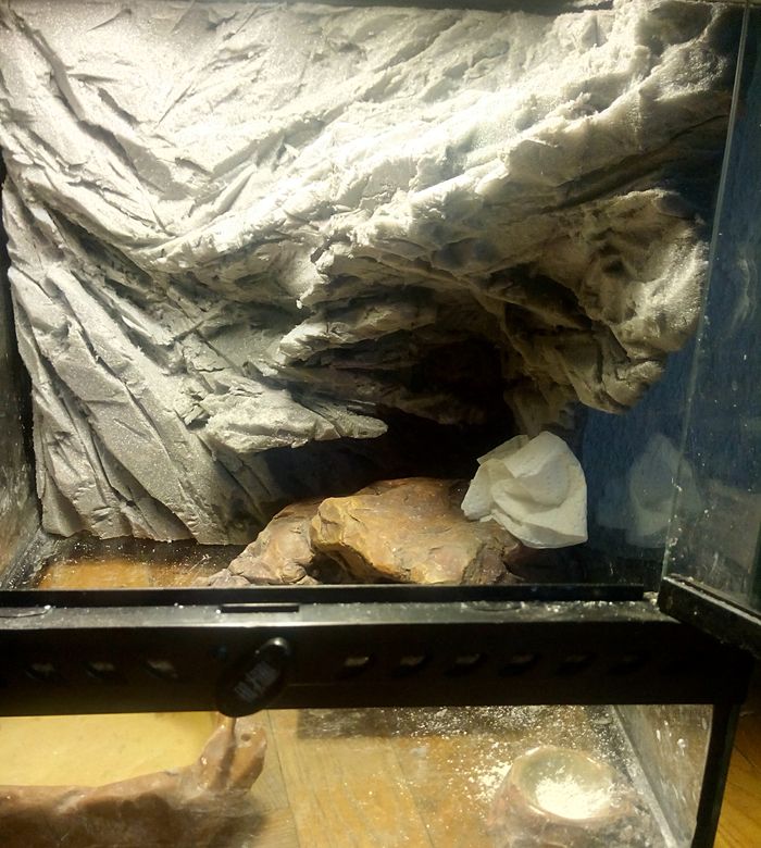 По поводу декоративного фона всё никак не решу вопрос: хочу в 30х30 задействовать две стенки, вместить туда и мини - укрытие на "втором" этаже , и ступеньки - полочки на стенах, и при этом пространство для света и воздуха. И чтобы всё имитировало скалы-камни....