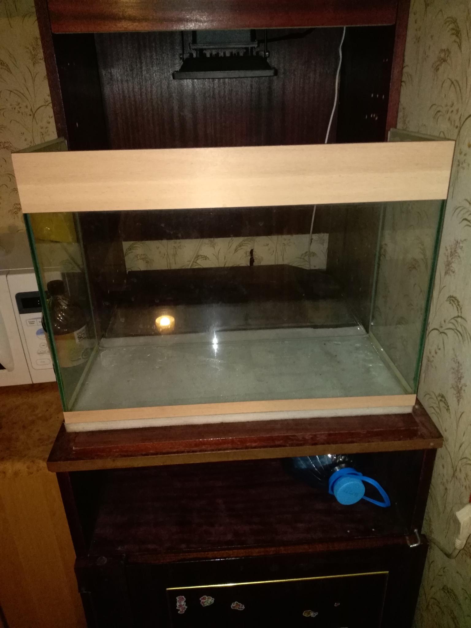 2. акваріум на 63 літри: довжина 70 см. ширина 30 см. висота 30 см. скло 6 мм. чорний силікон; без ребер; поклеєний чорний фон.