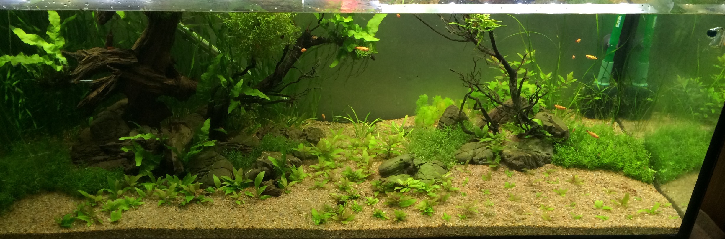 Начнем с предыстории) Был аквариум на 350 литров с черным базальтом, непонятными камнями, гетерантерой и хемиантусом. За полгода 3-го курса он пришел в полнейшее запустение. Микрорасборы и неокардинки в нем выживали, как могли. А могли они только жрать друг друга и смотреть в окно. Учитывая тот факт, что целых полгода к аквариуму подступиться не было времени и сил, популяция, выживающая в этом "прудике" держалась довольно стабильно.