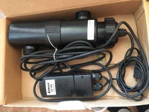 Стерилизатор Atman 9W. Все рабочее, лампа включалась максимум на 1-н месяц на 1 час в день. Идеальная вещица для убийства водорослей, аквариум становится кристально чистым.