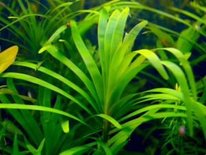Ярко-зеленый цвет и необычное расположение листьев как у веерной пальмы этого растения не оставит равнодушным ни одного любителя подводного сада.