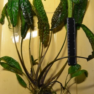 Крупный куст Cryptocoryne hudorai с четырьмя побегами. Выращен в погруженном состоянии под лампами ЛБ.