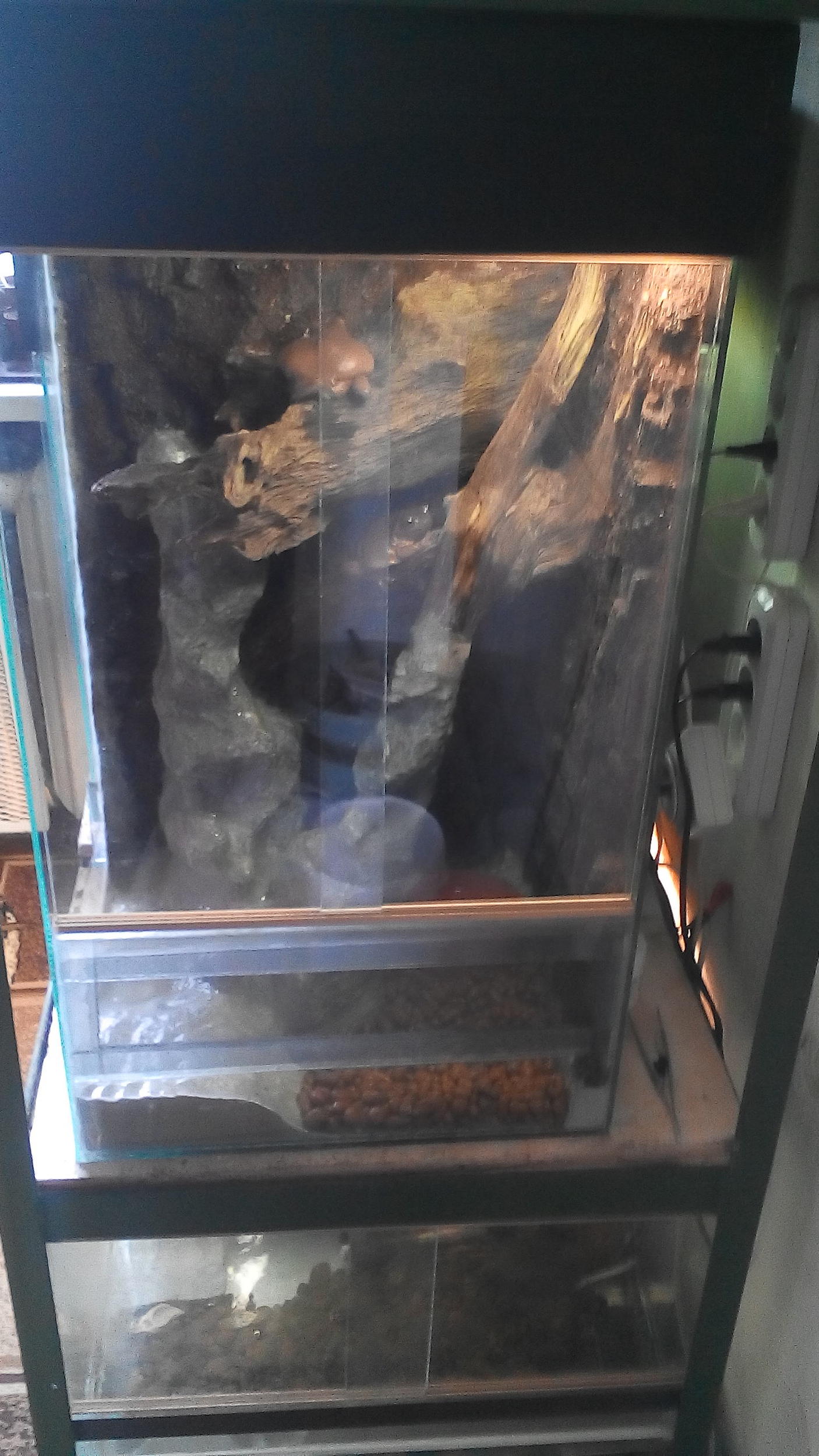Вот последний, для Водоно. Сделал воды/суши 50/50, потому что он одинаково любит купаца и загорать. С впереди сетка из нерж, чтоб котик не выцарапал, интересуется. Со светильничком над чтот придумать а то греется. А так я все.