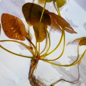 Нимфея получена от скрещивания нимфеи «Рубры» и* стародавнего «Тигер-лотуса». Из всего замеса получилось половина рубры и половина тигер-лотуса.Лот на фото ,высота кустика 15см.,сам маточник 25см,размножается отводками от корня.