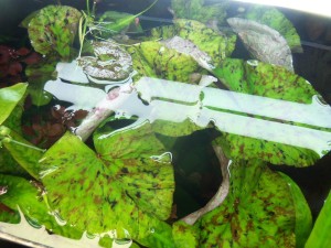 (Фото мои) Шикарный куст тигровой нимфеи, на фото красавица, в горшке посажено два куста (14 листов) отделю один, будет от 6 до 8 крупных листов.