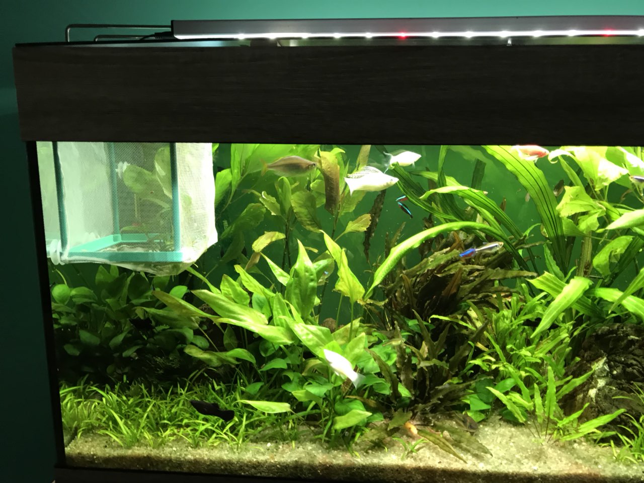 В аквариуме есть термометр, дропчекер и появился недавно отсадник (моллинезия родила).