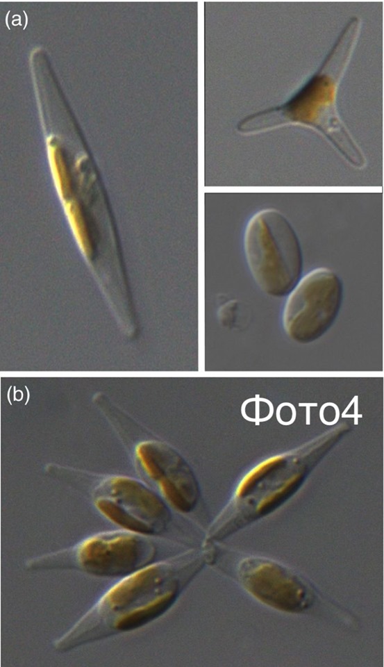 Но есть пример, когда SiO2 будет отсутствовать в «панцире», к примеру у Phaeodactylum tricornutum. Поверхность панциря покрыта тонким пектиновым слоем. Прошу обратить на это внимание, так как это поможет в диагностике проблемы и ее последующем решении. Под микроскопом Вы увидите такую картинку.