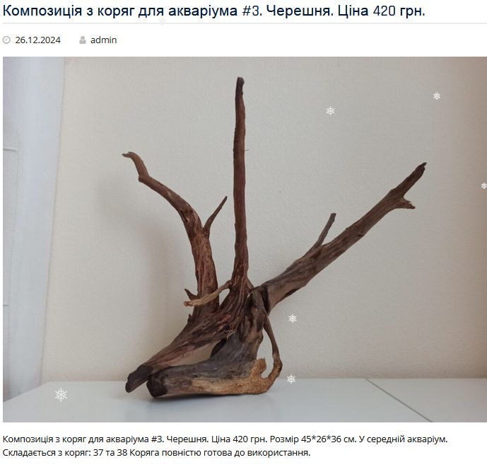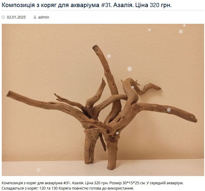 Є у наявності більше 100 коряг та композицій різної форми та розмірів!