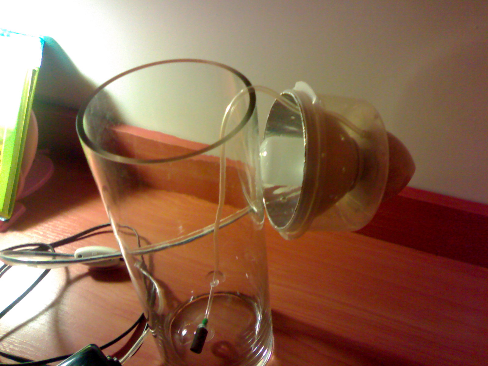 Скорее на всякий случай, хотя возможно и в целях укрепления конструкции, верхний обод маленькой лейки был дополнительно промазан суперклеем, нижний стык большой лейки и контейнера был промазан силиконом. Также была промазана силиконом лампа на стыке с цоколем.