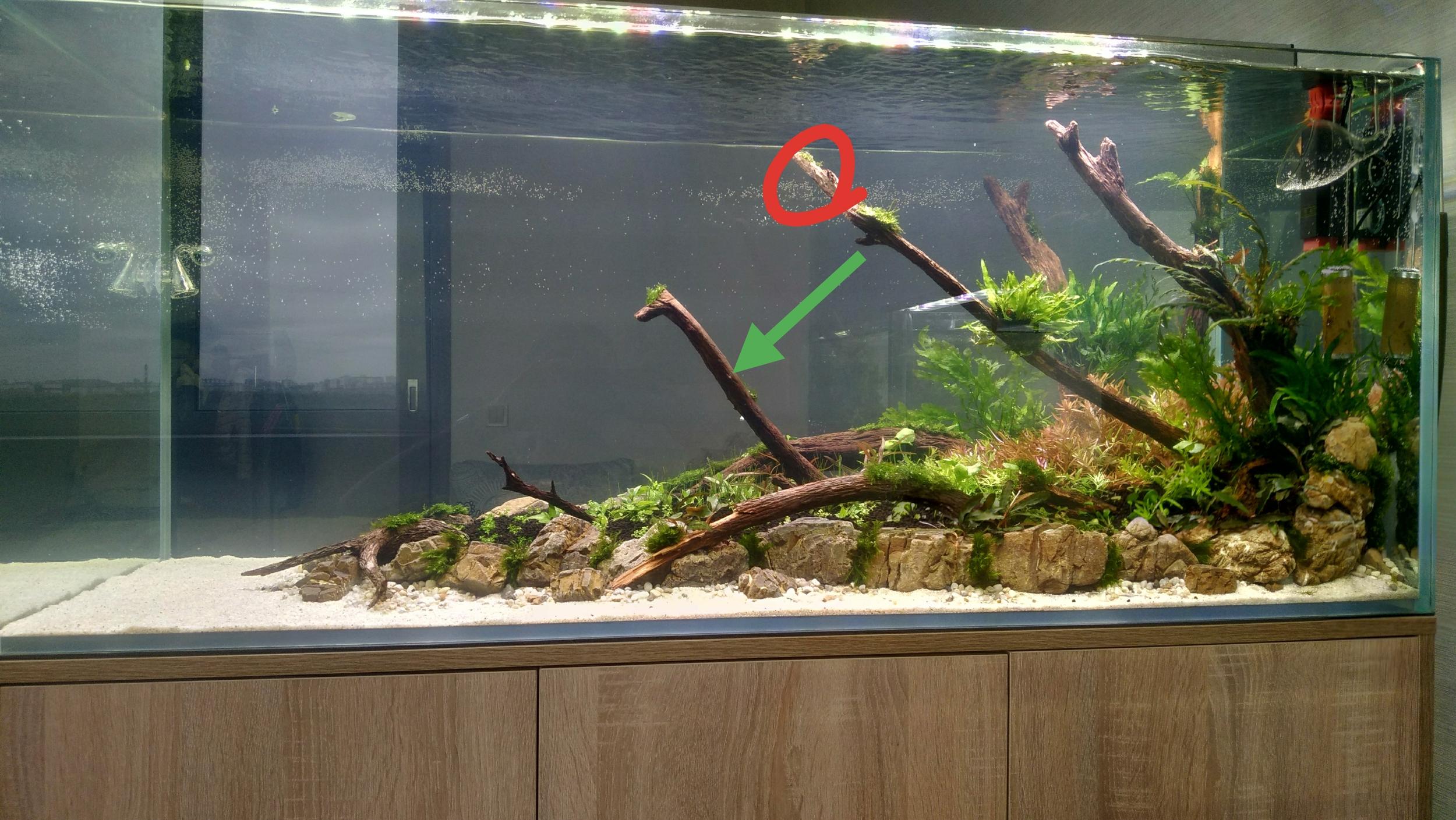 Намучився я зі шлангом фільтра капець, шланги просто дубові, гнутись геть не хочуть, ледве вдалось їх прилаштувати. Певно буду міняти. Ще технічні отвори в тумбі досить малі, треба певно купити крани для з'єднання шлангів, щоб без проблем можна було від'єднати частину шланга з лілі пайпами, інакше кожна чистка трубок загрожуватиме потопом, розбитими трубками і зіпсованими нервами. На виході з фільтра стоїть дифузор JBL Proflora Direct 16/22.
