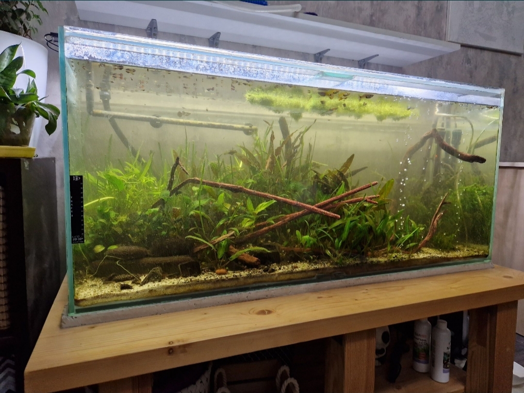 Продам акваріум на 220л наповнення води. Розмір Ш 111см В 50см Г 50см Внизу є кран для зливу - використовувався для донної фільтрації. В комплекті: 1. Фільтр зовнішній на 200+літрів. 2. Декілька коряг та водорості ( анубіас, валіснерія, лимонник, папоротники та ін. рослини) 3. Лампа 4. Обігрівач 5. Грунт Акваріум вже переїзжав декілька разів іі чудово працює. Не тече, радує очі. Причина продажу - немає часу на улюблене хоббі. Окремо можемо обговорити продаж столу під акваріум ( зроблений з брусу та столешні з натурального дерева своїми руками, укріплений металевими кутами та полицею. Доставка неможлива. Тільки самовивіз. Ціна за все + багато доп (коряги, грунт, бу фільтри та нагрівачі) - 9000грн