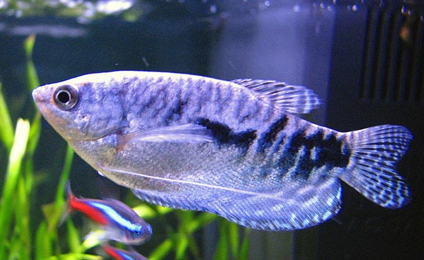 В моем аквариуме уже немного тесно, скалярии выросли и начали откладывать икру. Потому двум гурамкам уже маловато места.