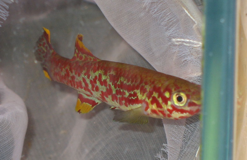 Fundulopanchax gardneri nigerianus Р82. Последний герой. Родился и вырос в креветочнике на подножном корме, его старшие сородичи в киллишнике постепенно повымирали, он - остался в живых. Аквариум, где они жили, расформирован и будет переделываться. Думал оставить его доживать век с парочкой мелких макроподов, но этот грубиян обгрыз хвост самочке и дерется с самцом. Посему отдаю. Парню примерно год. На фото - он собственной персоной. В воскресенье около 12 буду на Птичке, могу взять его с собой. Иначе - самовывоз от м.Дружбы Народов - м.Печерская.