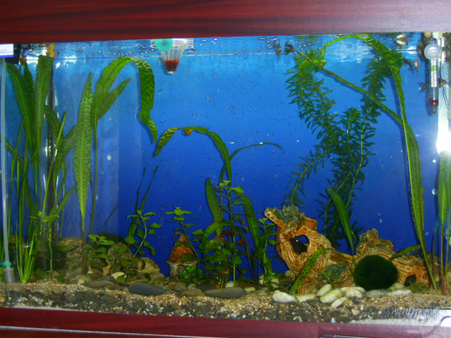 Вот тоже решил выставить свой аквас дабы послушать критику умных людей! Аквасу примерно 4 месяца, с месяц как биологическое равновесие вроде бы установилось. Фильтр внешний сделан как в постах этого форума, подача СО2 (бражкогенератор) тоже из форума! Только вот фон буду переклеивать(еще не решил какой, требуется совет бывалых), так как образовались пузырьки воздуха под ним, когда клеил все вроде бы выгонял! Ну вот собственно и всё. Правильно фоткать аквас только учусь так что не судите строго!