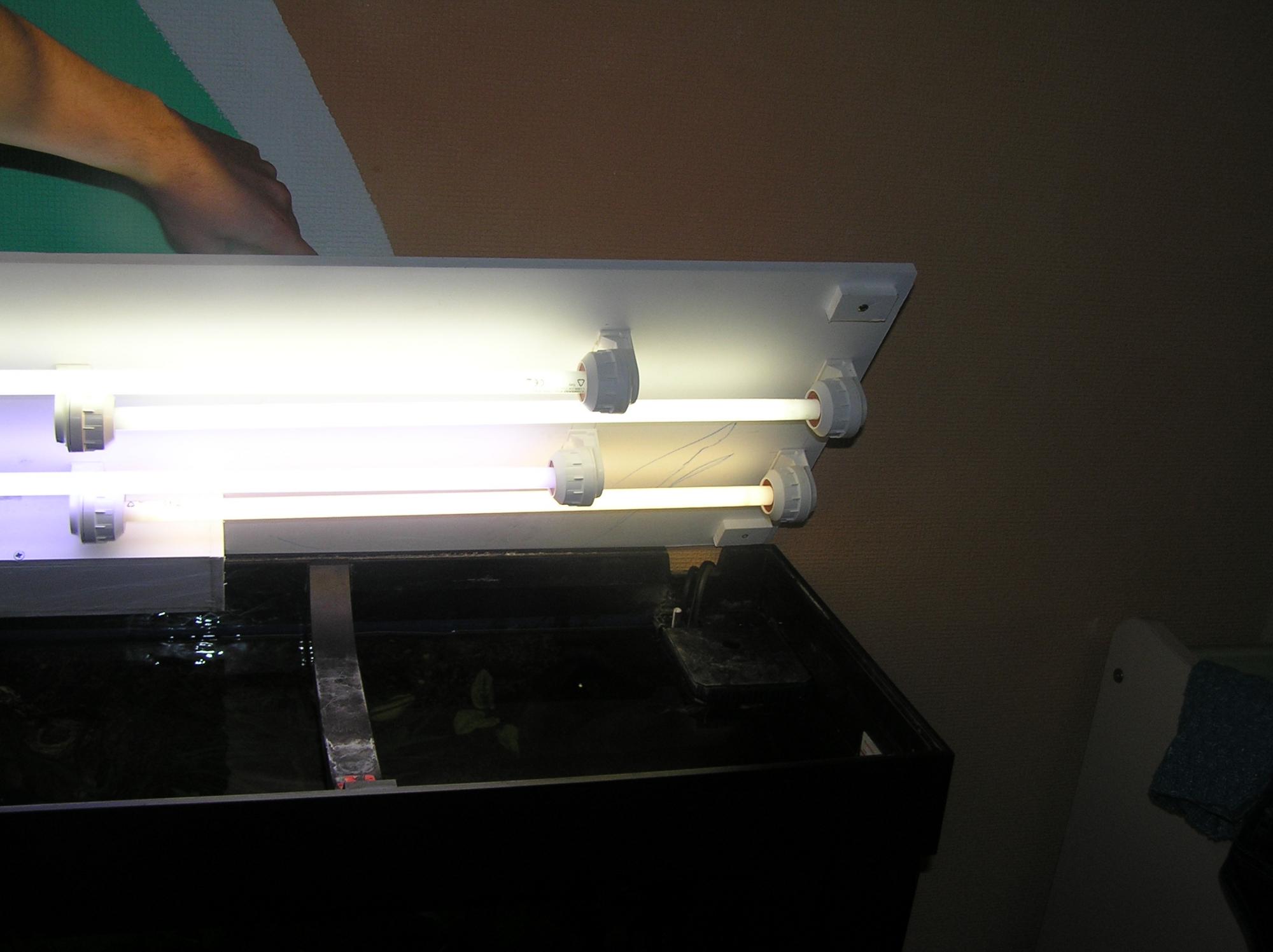 После долгого поиска решения по добавлению освещения в свой аквариум я пришел к выводу что лучьше вообще переделать крышку. Выбрав распостраненный размер и стандарт ламп получилось вот такое решение вопроса.