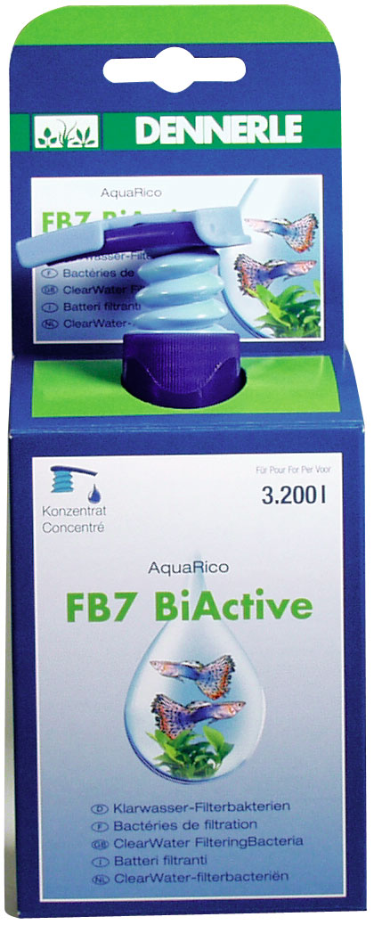 Высокоэффективные нитробактерии расщепляют опасный аммиак и нитрин. Дитробактерии преобразуют с помощью гидролитических энзимов дитрит в грунте и в фильтре. Другие, специально для аквариума выращенные виды бактерий, питаются остатками растений, кормов, рыбными экскрементами, а также отходами органического происхождения, образующими муть в аквариуме. Благодаря применению препарата FB7 BiActive постоянно увеличивается продолжительность самоочищения воды во всех пресноводных аквариумах. Оптимальные параметры воды сокращают стресс. Рыбы чувствуют себя гораздо лучше. Вода остается прозрачной.