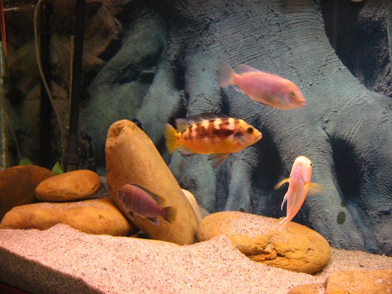 ну да фон больше подходит для америки, а вот для малавийцев каменного каменного чего-нибудь, а в общем очень неплохой аквариум, камушки интересные у нас такого не найти, завидую белой завистью))))