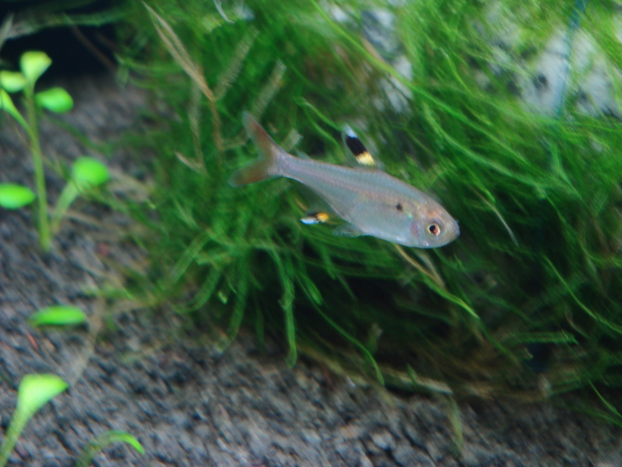 Пока что хотелось бы найти тетр. Правда не могу оперделить точное название - сама рыба серенькая, а верхний плавник с черной и желтой полосками. То ли лимонная то ли не знаю какая... Вот фото очень на нее похоже: