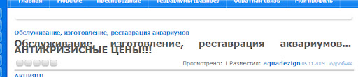 Учитывая, что сайт презентуется по тематике - Аквадизайн, особенно улыбнула страничка - Минигалерея (наши работы). Да и надпись - Форум работает полным ходом ... это громко сказано (мягко говоря).
