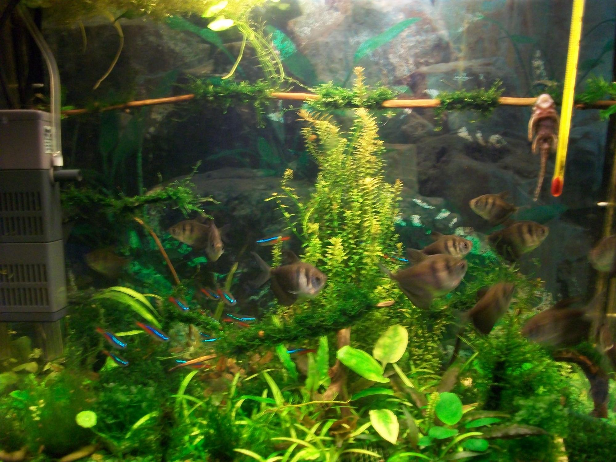 Мой аквариум на 30 л. литров.Никаких удобрений.Неоны, тернецыи, неокардинки.Если и поменял бы что-то, то это был бы грунт.Когда-то прикола ради засыпал салатовый грунт.А сейчас на классику потянуло(черный подавай!).