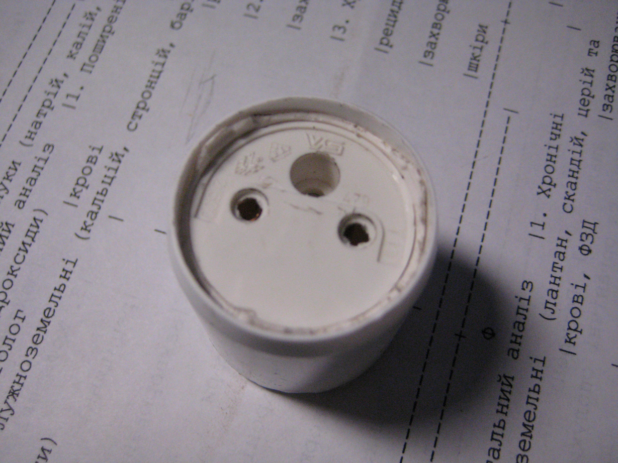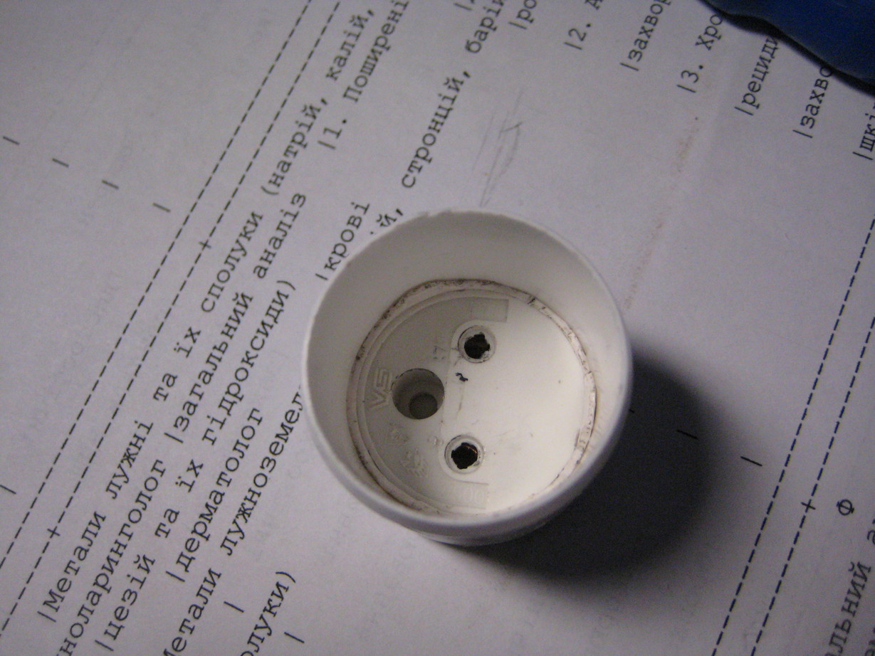 Затем патрон разобрав его я запоял провода дабы забыть за проблемму плохого контакта . И теперь вставляем наш накидной патрон во внутрь заглушки выводя провода черер заднюю часть заглушки. Входит очень плотно назад вытянуть не поломав чтото невозможно .
