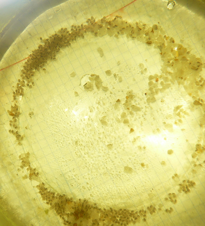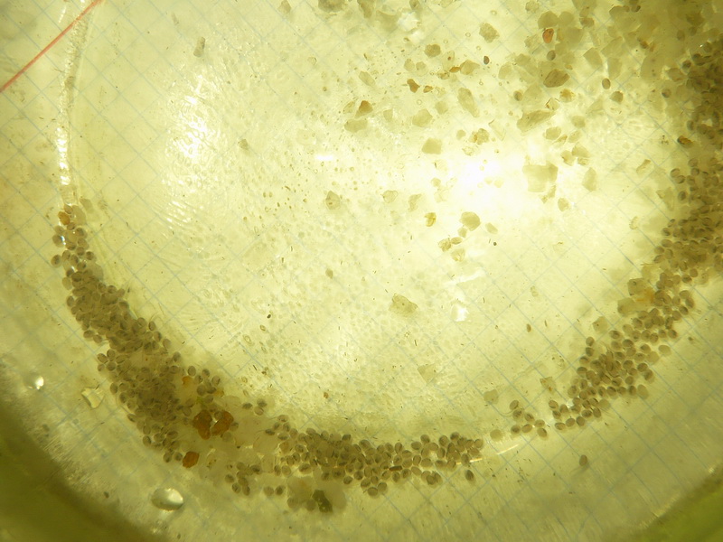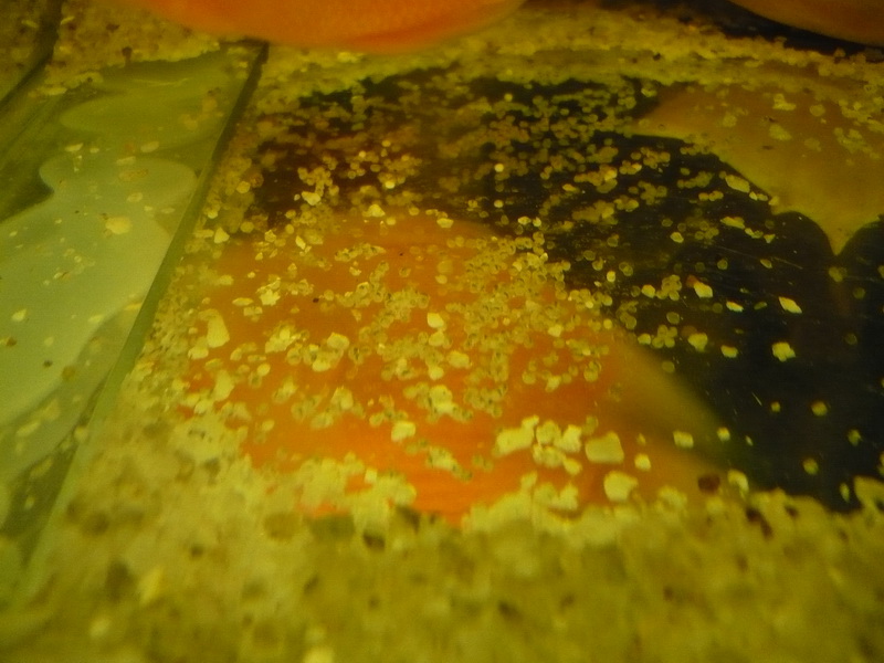 УРА!!! Начали вылупляться.Мамаша набирает в рот и выплевывает в угол, в кучку. Я решил пересадить в банку половину.