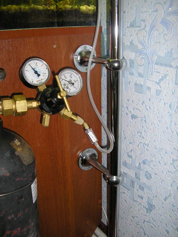 Светильник на основе металл труб. Мощность 150Вт. ПРА вынесена в отдельный блок от блока питания компьютера. Там же стоит блок питания на 6 вольт, который используется для вентилятора охлаждения ПРА!!!!!!!!. Этот же блок питания на 6 Вольт можно использовать и для э/м клапана подачи СО2!!!!!! Сам клапан я не использую, все никак руки не доходят до ума довести))))). Но автомобильный клапан подключал- работает на ура, 6 вольт достаточно и для пуска и для удержания клапана. Вся электроника может быть подключена к таймеру, т.е. включается свет и включается клапан (если вы его конечно будете ставить). Сама верхняя балка- регулируемая по высоте, так же и вертикальные трубы можно опускать выше и ниже сколько хотите. Размеры прожектора д*ш*в-260*160*130. Сама сея конструкция предназначена для аквариума и тумбы длиной 600 мм. (делал под себя). Но возможно переделать и под другие размеры. Скажете размеры- я новую трубу горизонтальную поставлю. Единственным недостатком сей кострукции считаю, что ПРА в блоке питания не закреплено, просто не к чему там было его крепить. Т.е. поставили: и не трогаете.