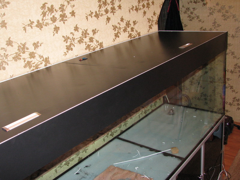 Как то, не давеча чем этой весной подрядился я, соорудить крышечку на аквариум 1600л размеры сего дивайса 2650*720*160 . Суть вопроса состояла в достойной замене галогенных светильников лампами т5.
