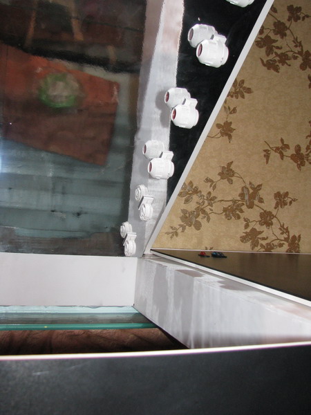 Для решения поставленной задачи было предложено 2 секции по 6 т5 по 54Вт. Но вот незадача, при включенных всех 12 лампах температура под крышкой поднималась до 60 С, посему пришлось наковырять много дырок в задней панели, а торцевой - скрытой от наблюдателя поставить два 80 мм куллера.