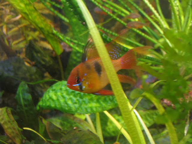 Так смотрится в аквариуме (правый угол, под корягой. Привязываю пучки к камням, они очень быстро превращаются в пышные кусты):
