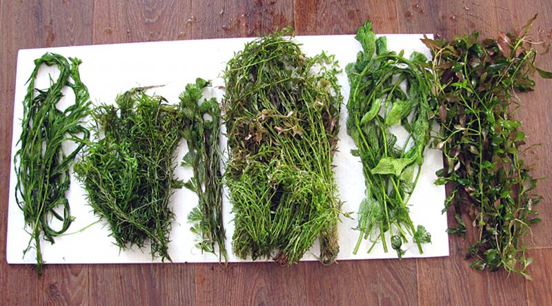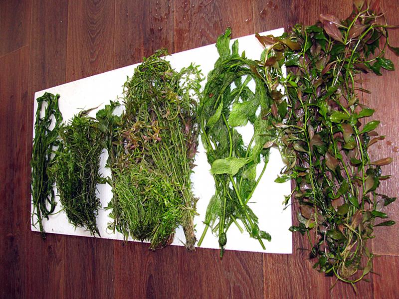 Много, у меня 10 л ведро плотненько - перистолистника, дидиплиса, кабомбы, роталы, амбулии и людвигии. Собственно смотрите фото.
