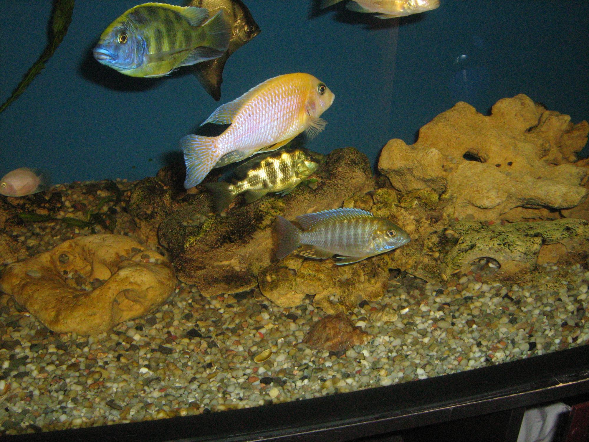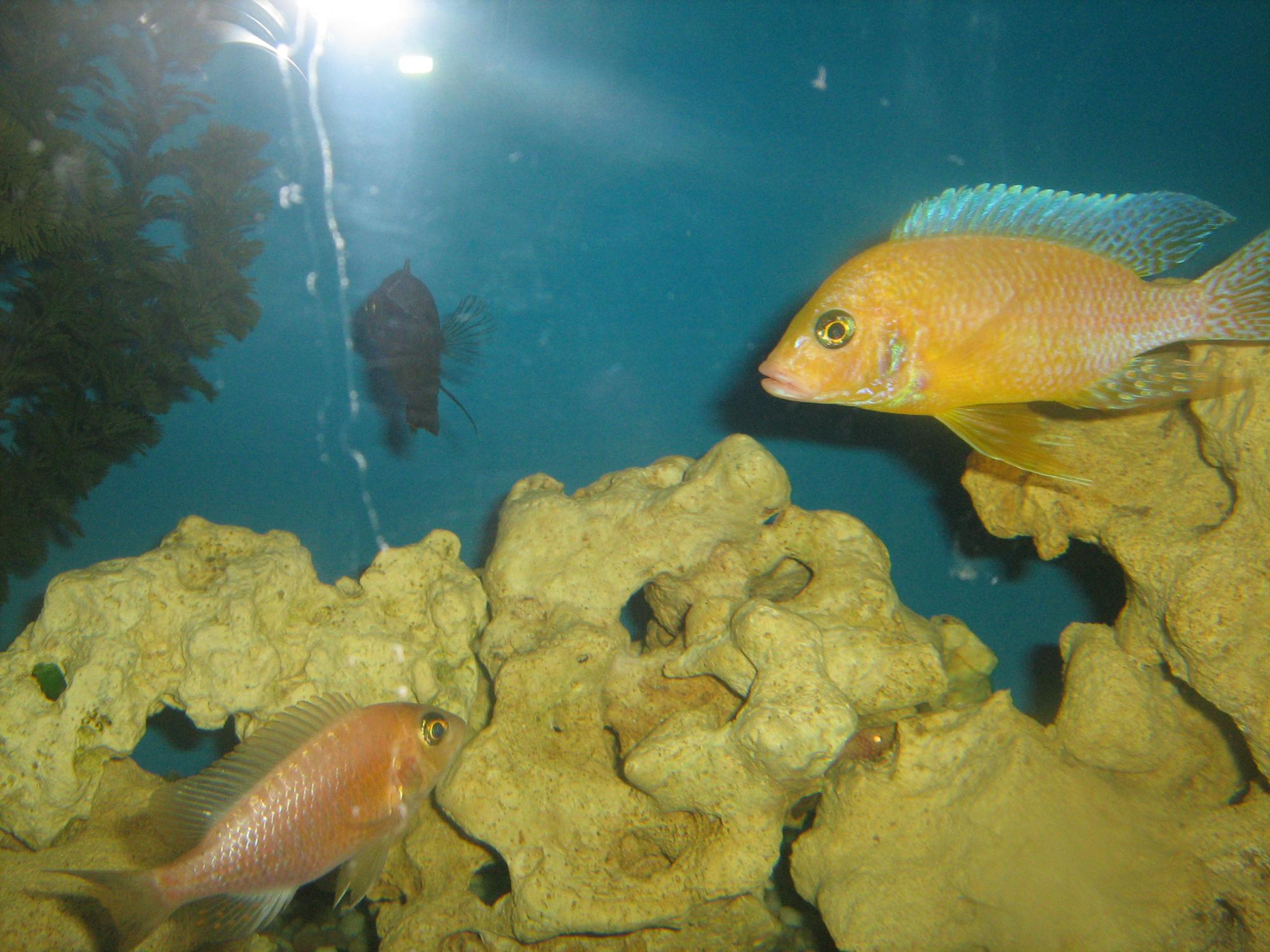 1) Aulonocara sp.Rose (взрослый самец 17см и подростки-один около 10см, штук 7 примерно по 6см)