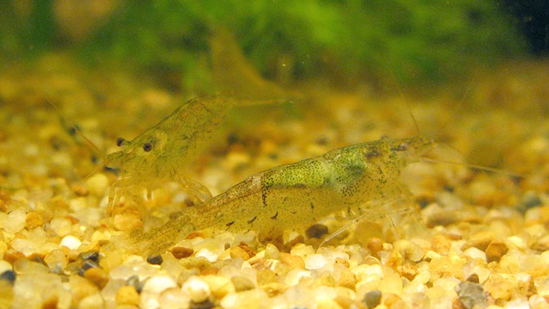 Креветки абсолютно мирные создания, не обижающие рыбок и не повреждающие растения.