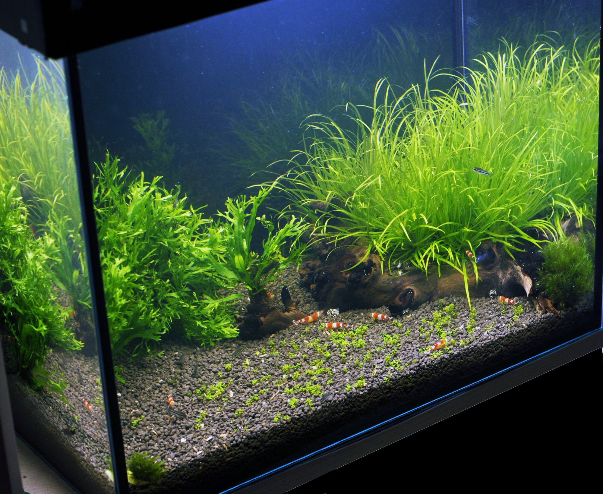 Полностью осмотическая вода. при подменах добавляю Aqua-Art Shrimp Mineral. Плюс использую удобрения линейки компании Seachem.