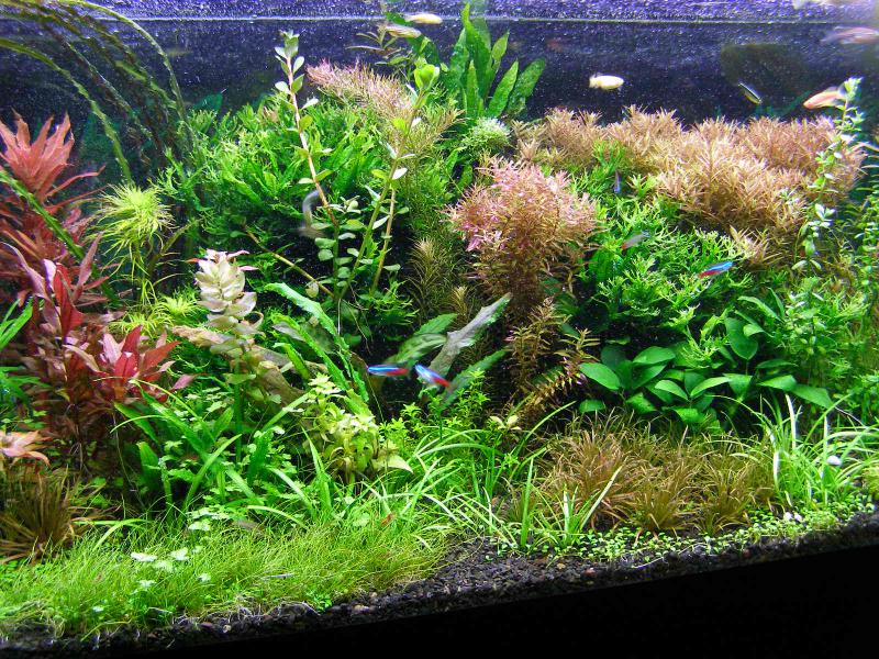 Растения Анубиас ,мох яванский ,Криптокорин, папоротник Ванделов ,Глоссостигма элатиновидная, Ротал индийский Ротал минима Ситняг игольчитый .Аммания Синегальская.Бликса японская.Гидрокотила трипартита .Стрілолист шиловидний (Сагітарія) Гигрофила узколистная .Альтернавтера Рейнека ,Хемиантус микрантемоидес ,Прозерпинака палюстрис ,
