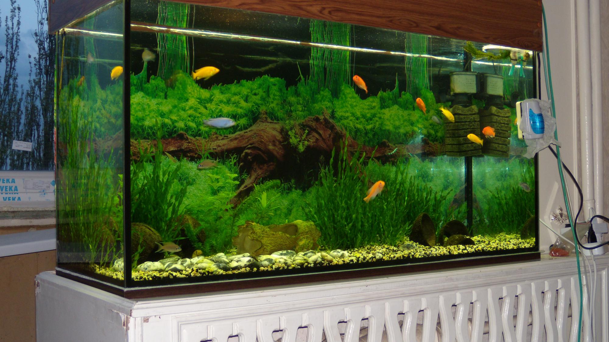 P.S. Если я не ошибся, у вас аквариум стоит прямо на батарее. Рекомендую запастись крайне теплолюбивой рыбкой на зиму))
