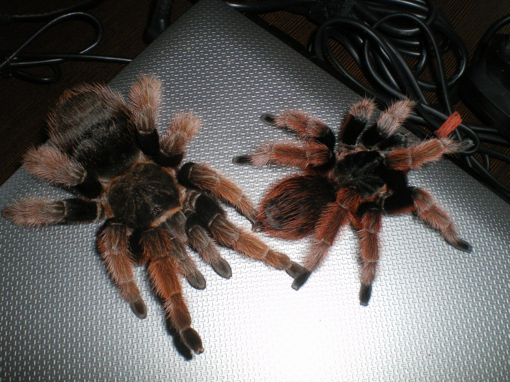 Brachypelma vagans 10L. Слева свежевылинявшая, справа спустя неделю. Немного застенчива после линьки.
