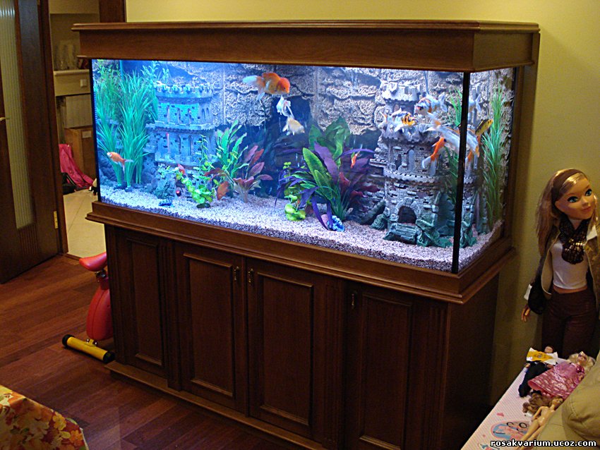 когда я был в 5ом классе, попросил у мамы аквариум по больше(у меня был шарообразный, литров на 15...) ну прихожу как то и стоит сиё чудо, тогда он мне казался громаднейшим. Пробыл у меня он ровно до появления компьютера, и дитё (читай я) забило.