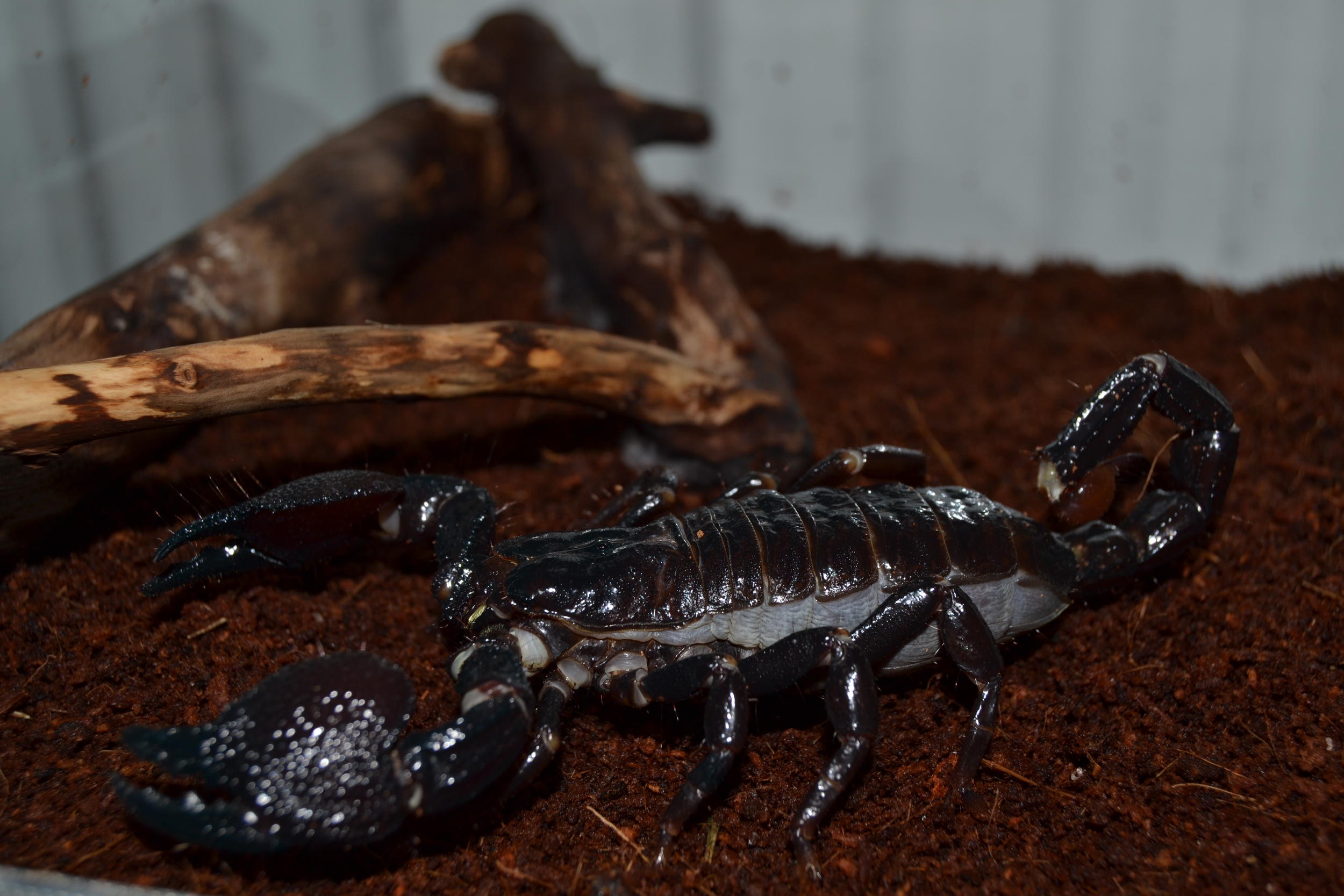 Приобрел ещё давно самку императорского скорпиона уже взрослую. Вот спустя пару лет решил подыскать ей или ему пару.